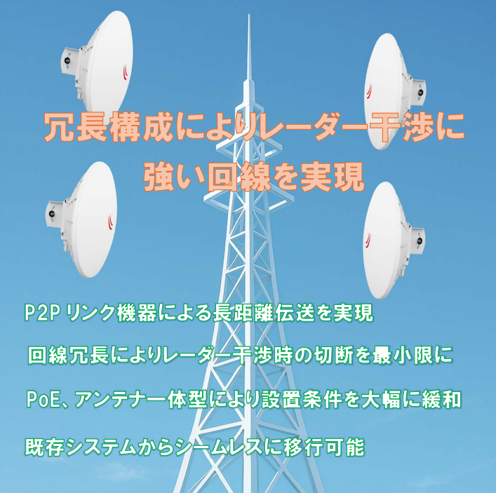 〇レドームで覆い⾵雪、⾬や⿃害からアンテナを守ります。
